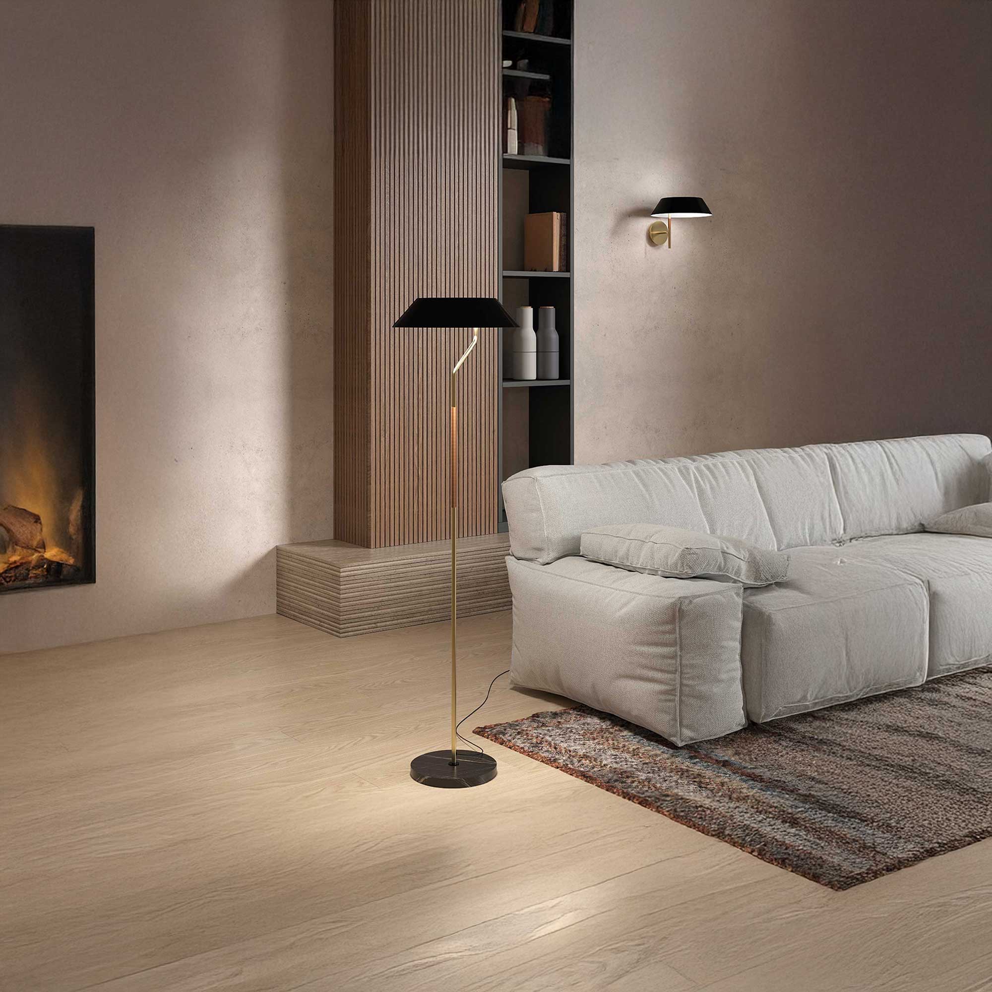 Stolní svítidlo Aider od španělské značky Aromas del Campo, navržené Arnoldem Salidem, je menší variantou stejnojmenného stojacího modelu a nabízí stejný důmyslný vizuální styl. Jeho kompaktní základna z přírodního mramoru dodává lampě stabilitu i luxusní vzhled, zatímco štíhlá tyč vede ke kuželovému stínidlu s elegantními kovovými a dřevěnými detaily. Lampa je osazena paticí E27 a součástí balení je i stmívatelná LED žárovka (9W, 2700K, 810 lm), která poskytuje příjemné teplé světlo. Ovládání intenzity světla je snadné díky stmívači umístěnému přímo na napájecím kabelu. Svítidlo se ideálně hodí na pracovní stůl, noční stolek nebo jako dekorativní prvek do interiéru.