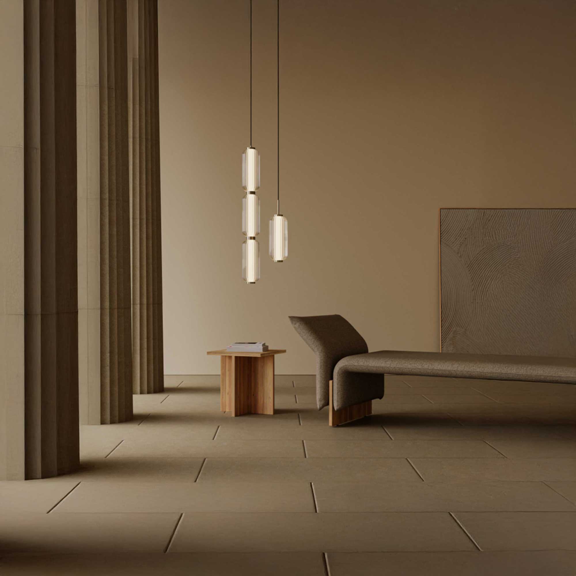 Závěsný lustr Elma L od španělské značky Aromas del Campo je dílem designéra Jose Fornase, který dbá na harmonii materiálů a nadčasový vzhled. Svítidlo vyniká rýhovaným skleněným stínidlem, které dodává prostoru jedinečný styl a jemnou eleganci. Díky možnosti zavěšení v horizontálním nebo vertikálním formátu se lustr snadno přizpůsobí různým typům interiérů a stává se centrálním prvkem dekorace, zejména nad jídelními stoly nebo pracovními plochami. Kovová konstrukce a základna jsou k dispozici v provedení matná černá nebo patinované zlato, což podtrhuje luxusní vzhled svítidla. TRIAC stmívání umožňuje plynule regulovat intenzitu světla a integrovaný 20W SMD LED zdroj s teplou barvou světla 2700K poskytuje příjemné, měkké osvětlení vhodné pro vytvoření útulné atmosféry.