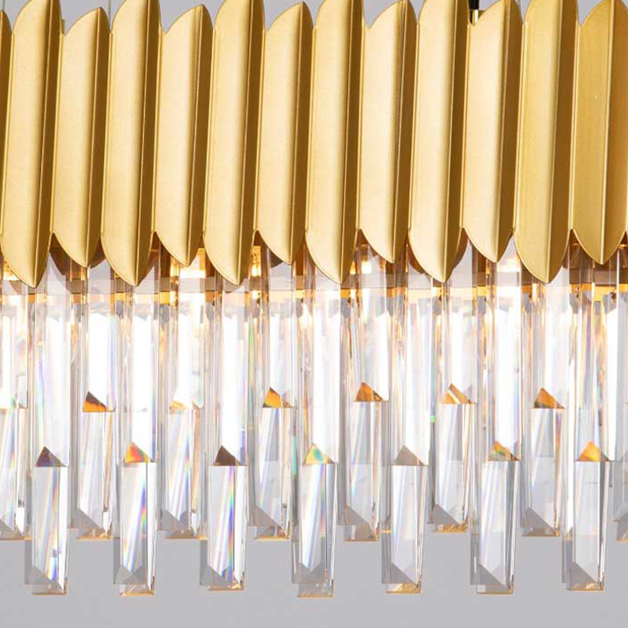 Závěsné svítidlo Nova Luce MAGNOLIA je zlatý křišťálový lustr. MAGNOLIA od Nova Luce představuje velmi elegantní a dekorativní svítidlo, které se hodí jak do moderních domácností, tak do klasických interiérů. Rám je vyroben z kovu, natřený luxusní zlatou barvou a zdobený obdélníkovými hranoly, které visí dolů v různých stupních. Při zapnutí svítidla vyzařuje přes hranoly krásné, měkké a příjemné světlo. Toto svítidlo je ideální pro umístění do jídelny nebo vstupního prostoru, kde může být doplněno dekorativními světelnými zdroji pro dokonalý výsledek. Závěsné svítidlo je vybaveno paticí pro žárovky E14, což umožňuje volný výběr žárovek pro individuální osvětlení.